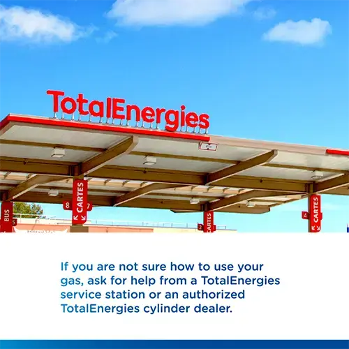 - Always purchase your cooking gas from a TotalEnergies Service station or a TotalEnergies GAS authorized dealer